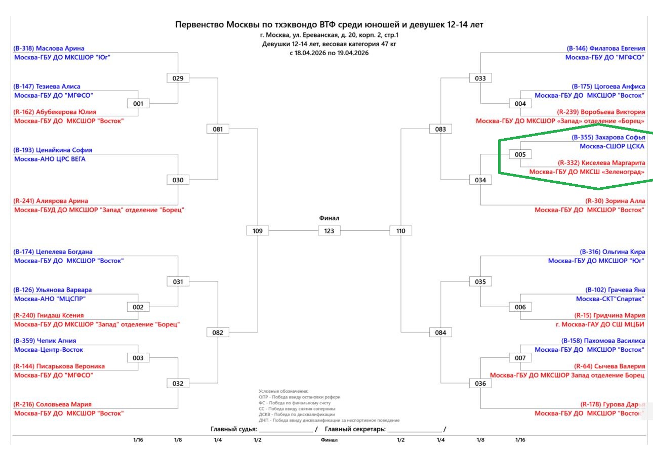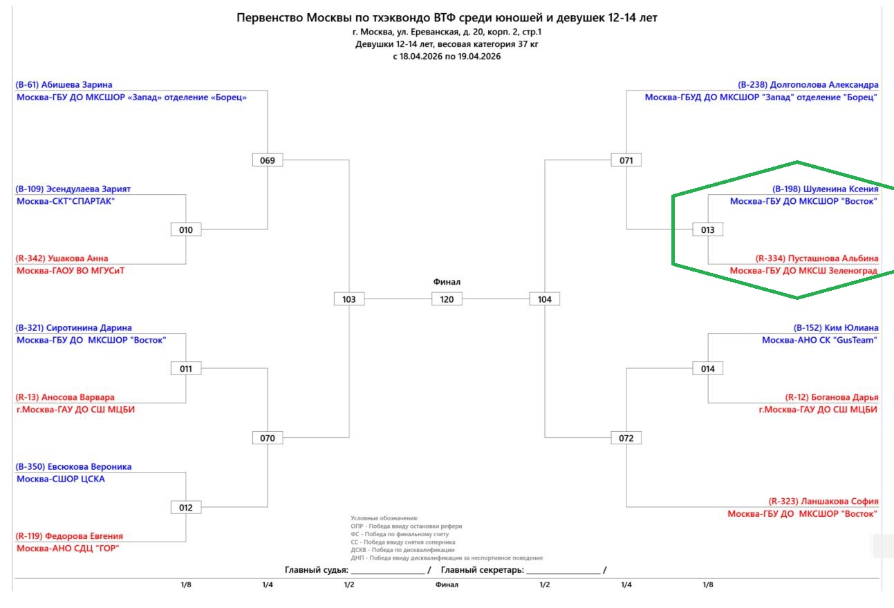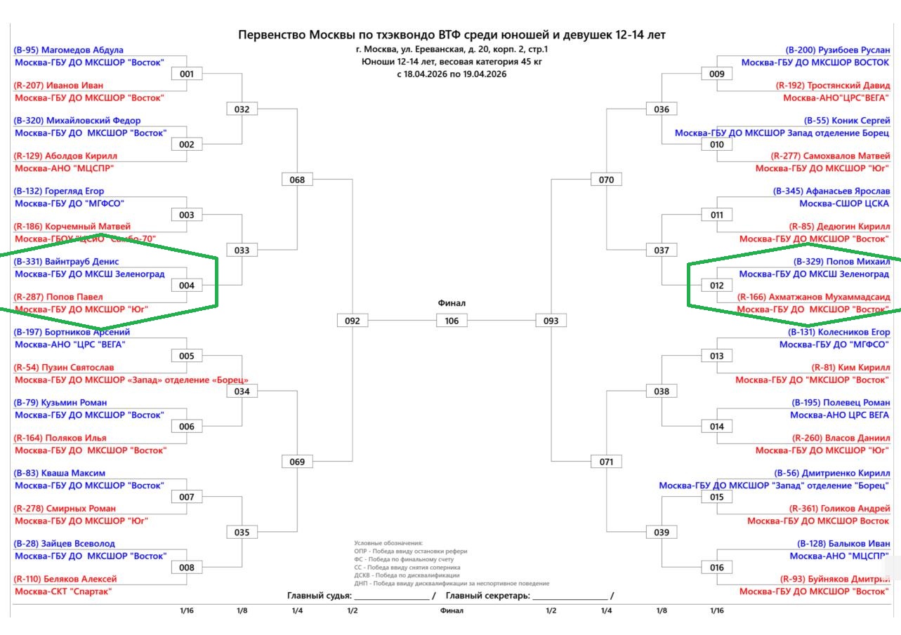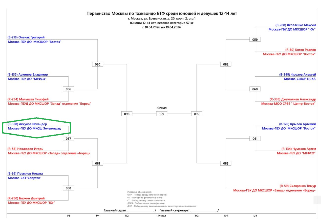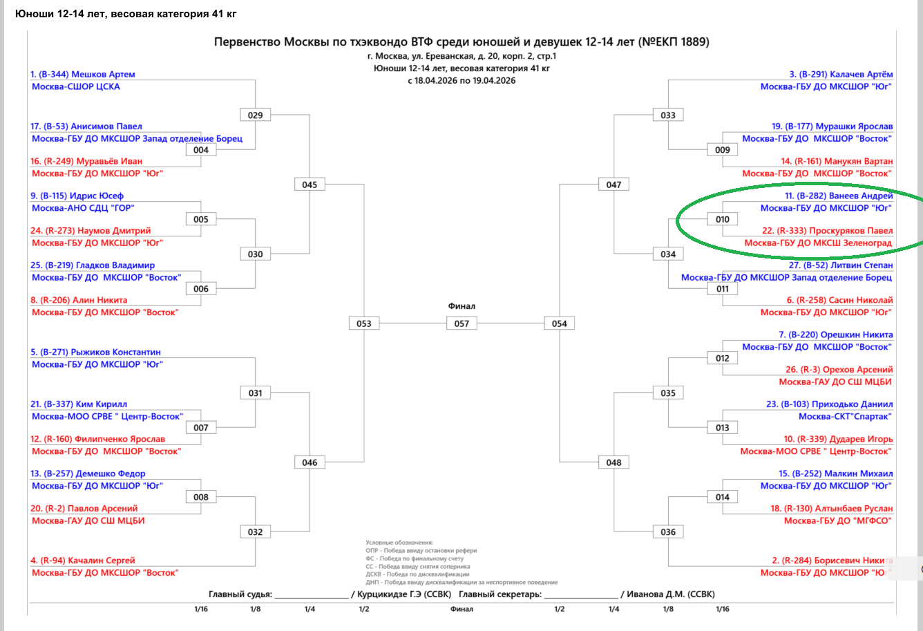 17-19 апреля в Москве состоялось Первенство Москвы Тхэквондо — Поединок (Кируги) среди спортсменов 12-14лет. Данные официальные федеральные соревнования были организованы и проведены силами Федерации Тхэквондо г.Москва на великолепном, самом высоком уровне. Компетенция Судейского Корпуса и сопутствующих рабочих процессов позволили соревнованиям состоятся без остановок и задержек, точно в соответствии с опубликованным регламентом данного соревнования. Соревнования прошли без травм, что так же является свидетельством высокой компетенции работы Судейского Корпуса. Все виды инспекций и контроля, в том числе процедур взвешивания, как официальной так и контрольной. Воспитанники ГБУ ДО МКСШ Зеленоград так же принимают участие в работе Судейского Корпуса. 9 наших воспитанников проходили обучение и сдавали экзамены в январе этого года. Пятеро из них уже три года подряд проходят в Москве обучение и сертификацию. Ашрапов Митрий даже уже работает в составе Судейского Корпуса МФТ-СТР. В том числе и на данных соревнованиях он был приглашен и отработал в качестве Судьи. Это замечательно!